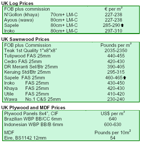 for African lumber are lower than in 2006. Specific deliveries of sapele have been delayed, demand for sipo