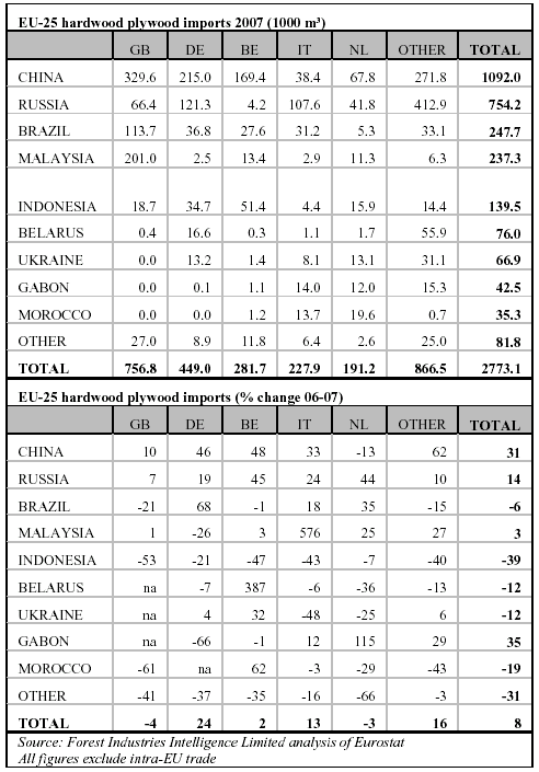 EU imports of hardwood plywood rose strongly from