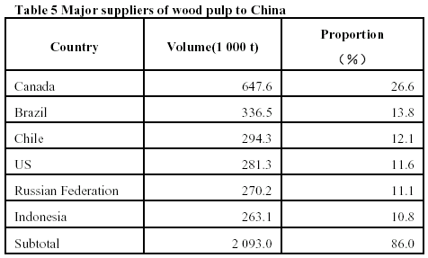 wood pulp were shown in Table 5.