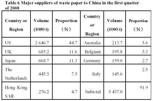 imports of waste paper were mainly from the US, EU,