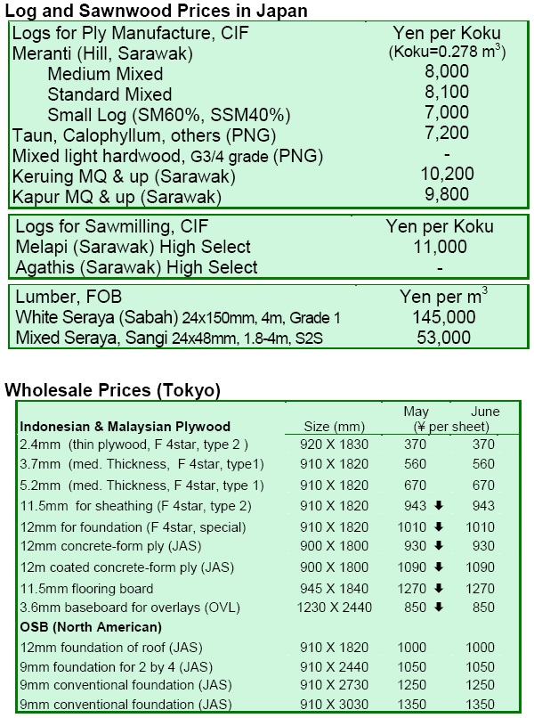 end-users’ in Japan for South Sea logs. Prices for Sarawak