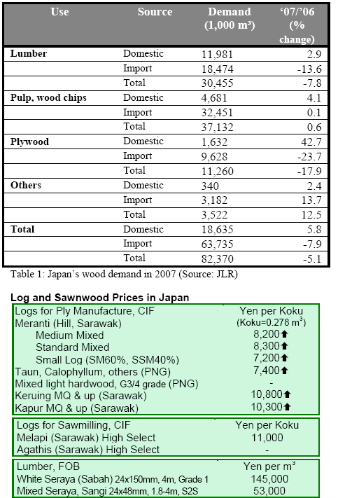 sawnwood had increased 5.8% in 2007 and that Japan’s