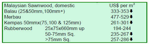 sawnwood prices in April 2009 showed gains by value.