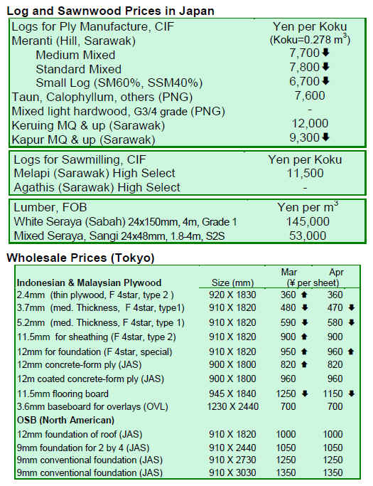 Japan Wood Products Prices Dollar Exchange Rates of 7th May 2009 Japan Yen 99.04 Reports From Japan