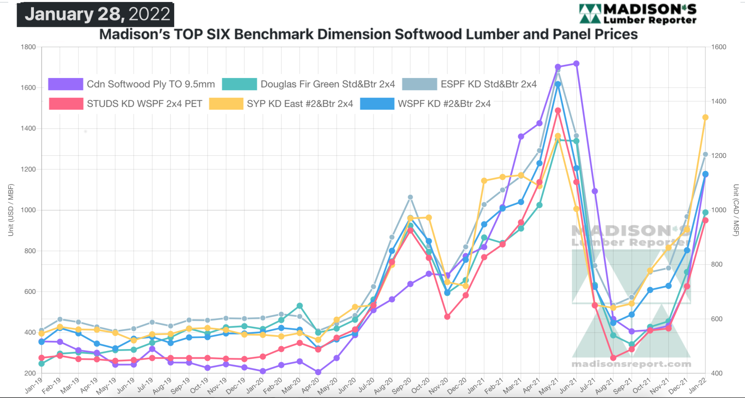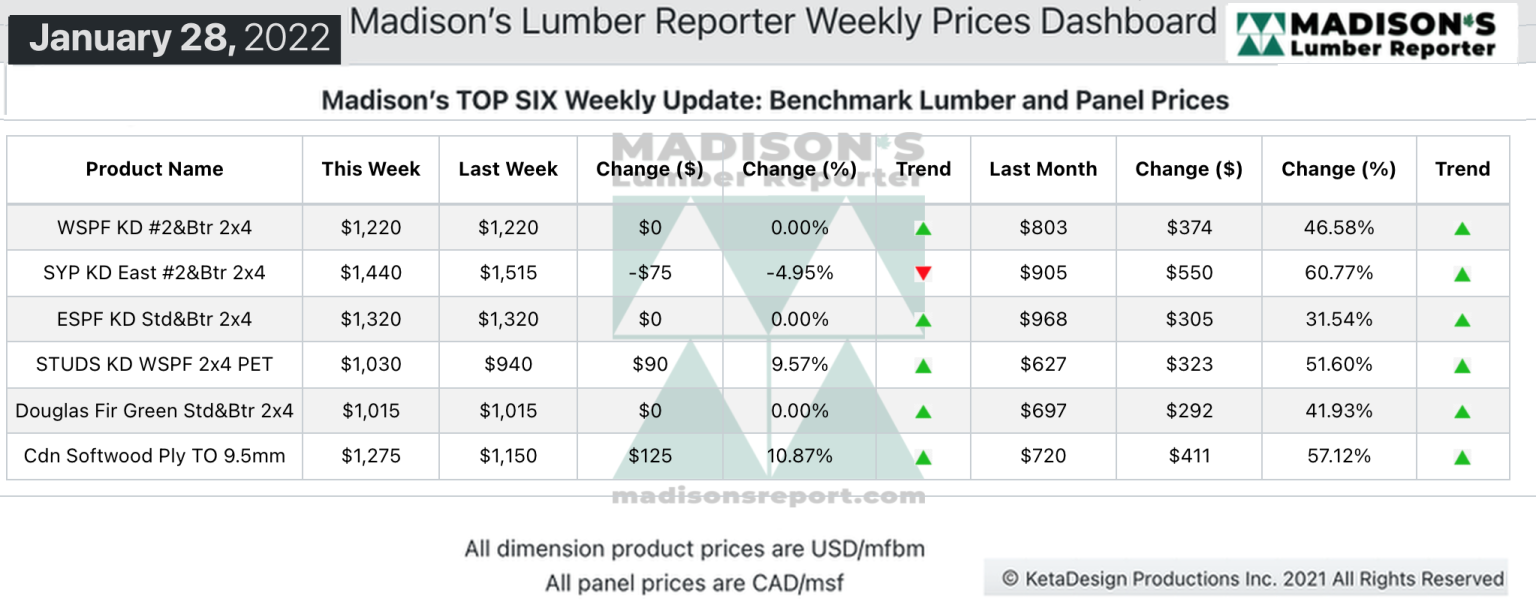 Madison’s Benchmark Top-Six Softwood Lumber and Panel