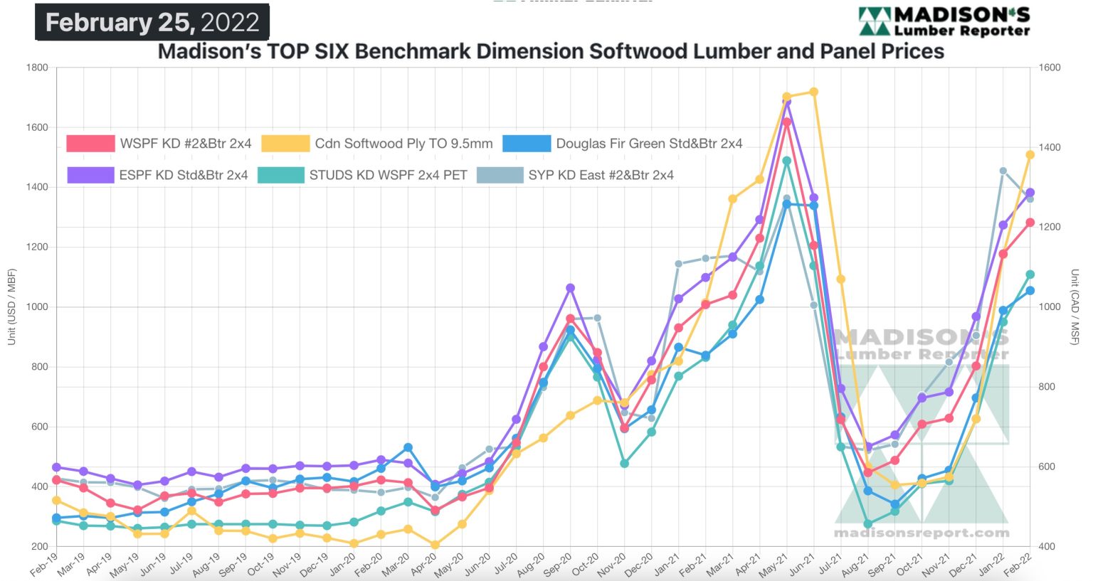 “Geopolitical events provided an ominous distraction from the lumber market and sales activity was consequently dampened as February came to a close.” – Madison’s Lumber Reporter