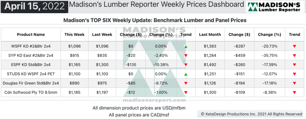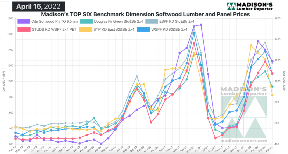 Madison’s Benchmark Top-Six Softwood Lumber and Panel