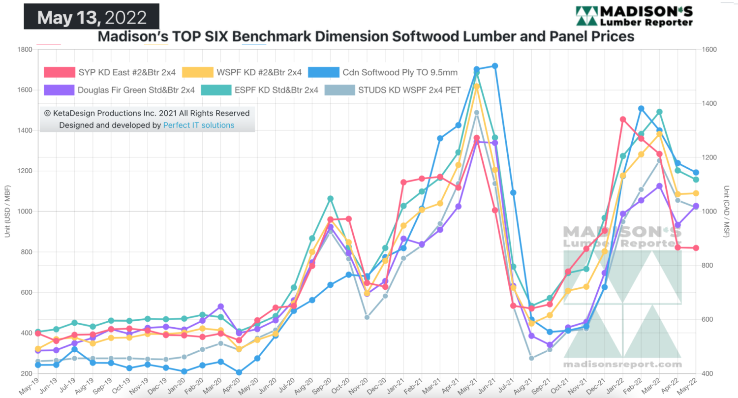 Madison’s Benchmark Top-Six Softwood Lumber and Panel
