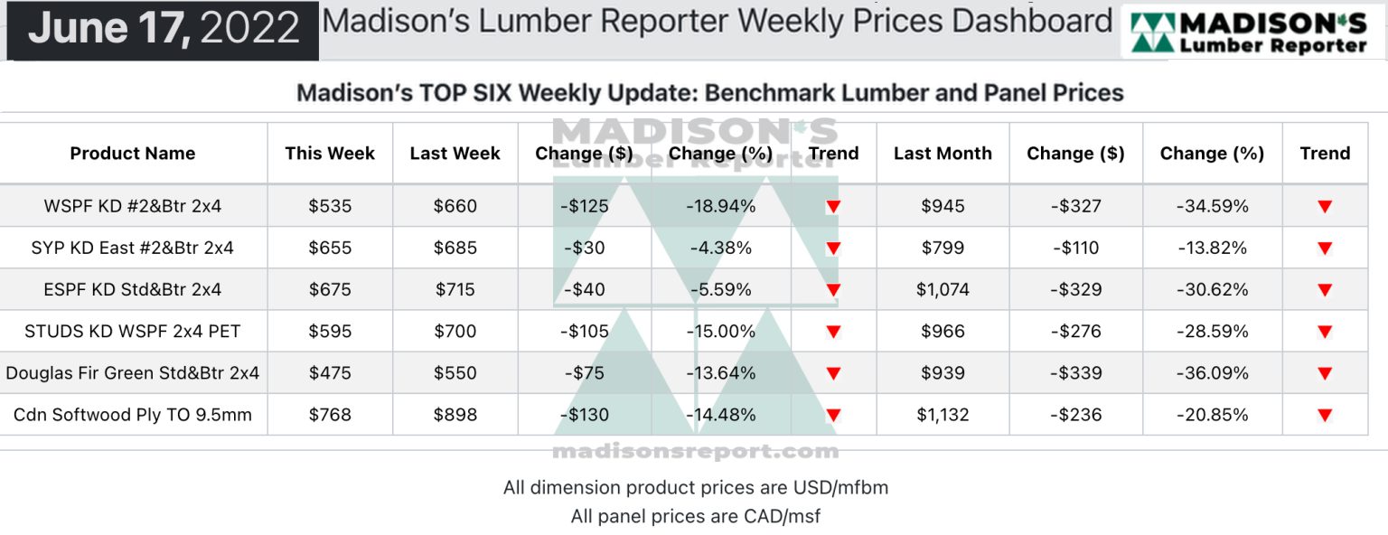 Madison’s Benchmark Top-Six Softwood Lumber and Panel