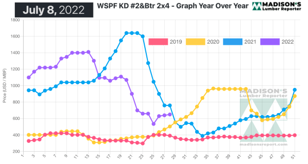 of Western Spruce-Pine-Fir 2×4 #2&Btr KD (RL) for the week ending July 8