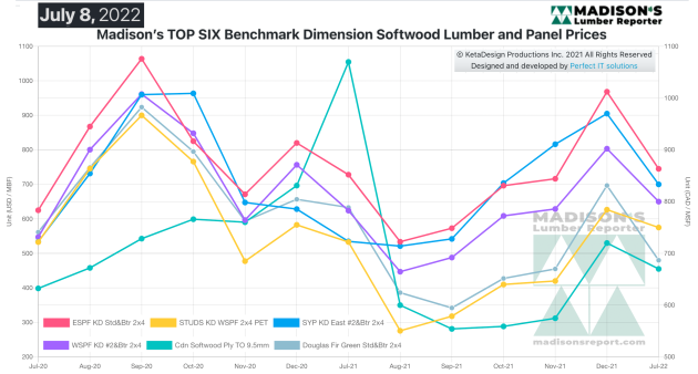 Madison’s Benchmark Top-Six Softwood Lumber and Panel