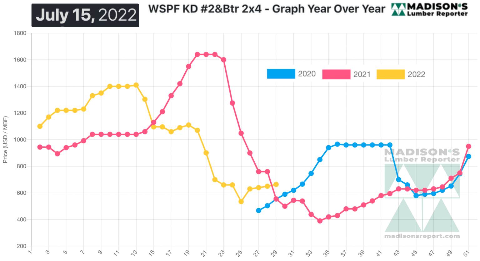 of Western Spruce-Pine-Fir 2×4 #2&Btr KD (RL) for the week ending July