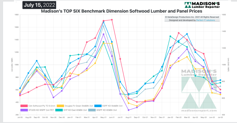 Madison’s Benchmark Top-Six Softwood Lumber and Panel