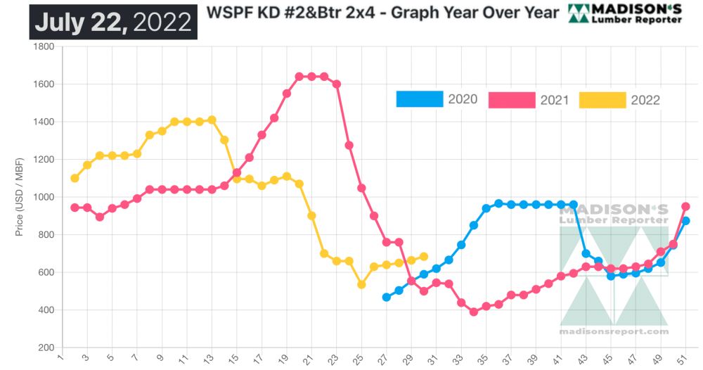 of Western Spruce-Pine-Fir 2×4 #2&Btr KD (RL) for the week ending July