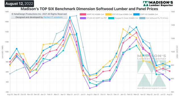 Madison’s Benchmark Top-Six Softwood Lumber and Panel