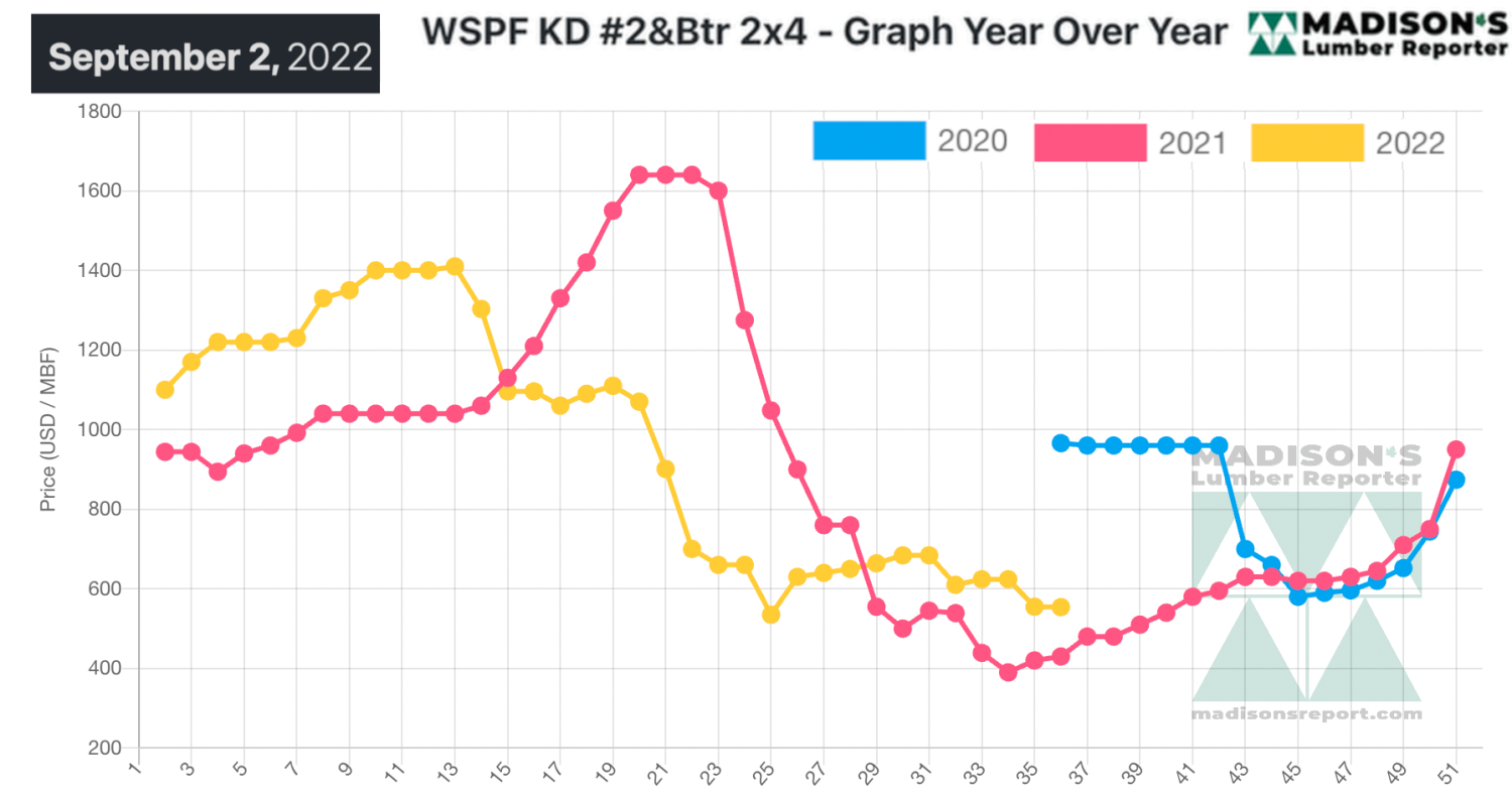 Western Spruce-Pine-Fir 2×4 #2&Btr KD (RL) for the week ending September