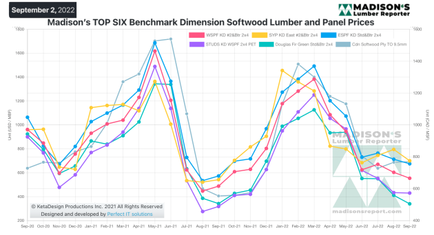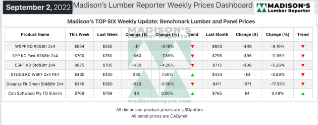 Madison’s Benchmark Top-Six Softwood Lumber and Panel