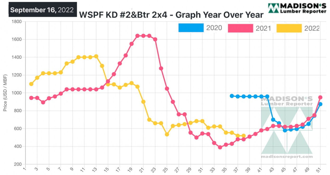of Western Spruce-Pine-Fir 2x4 #2&Btr KD (RL) for the week ending