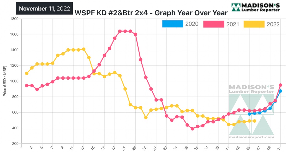 of Western Spruce-Pine-Fir 2×4 #2&Btr KD (RL) for the week ending