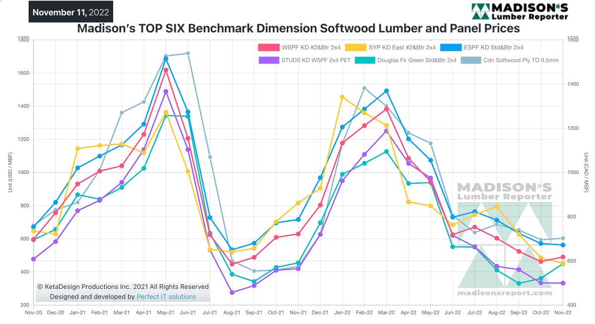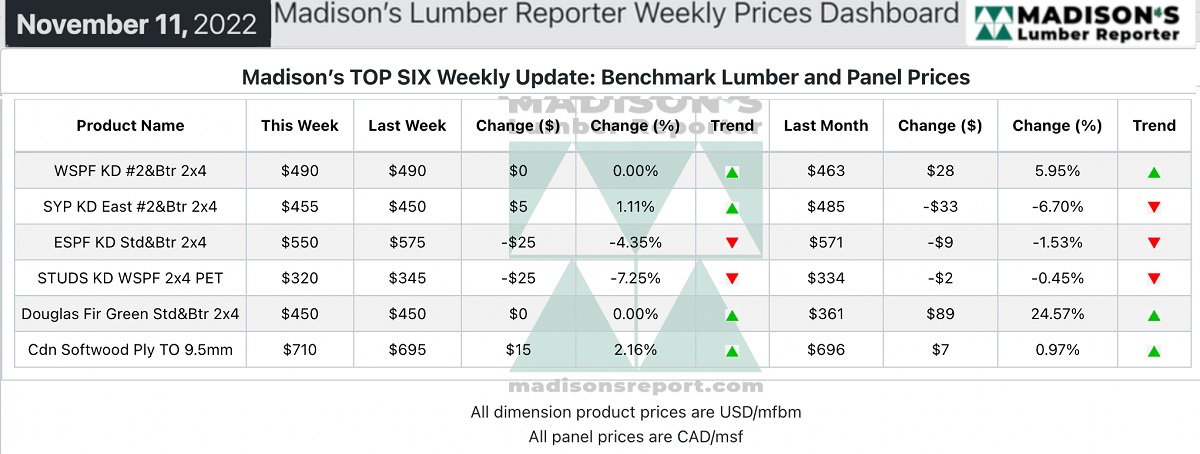 Madison’s Benchmark Top-Six Softwood Lumber and Panel