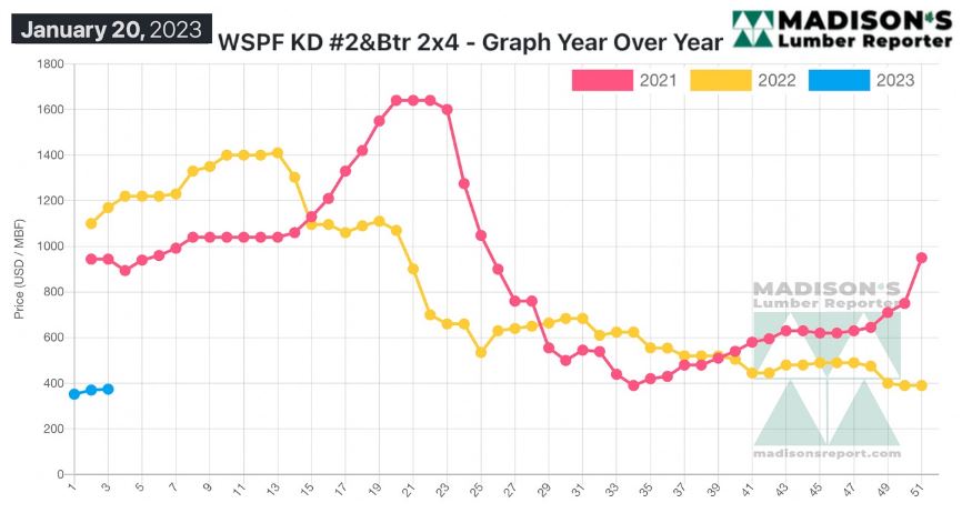 Western Spruce-Pine-Fir 2x4 #2&Btr KD (RL) for the week ending January 20,