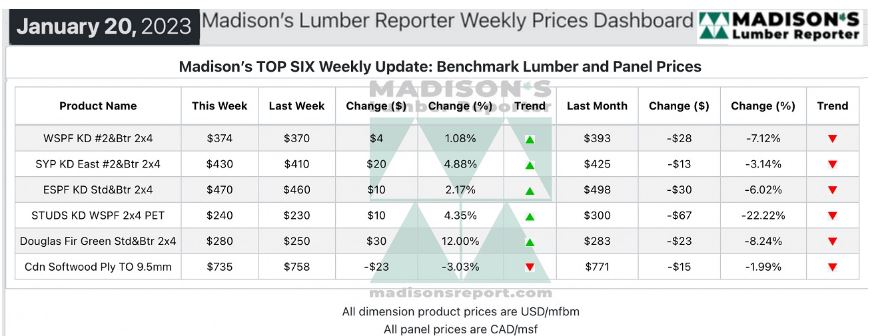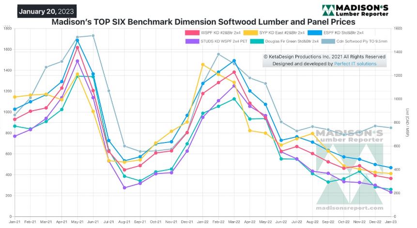 In the week ending January 20, 2023, the price of benchmark softwood lumber