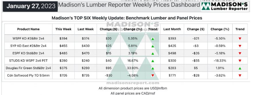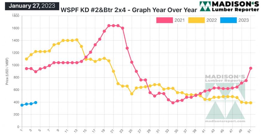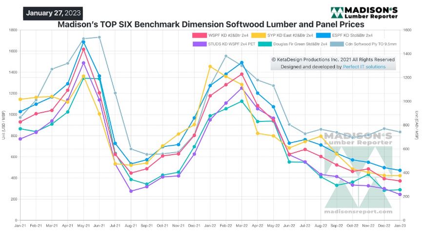 In the week ending January 27, 2023, the price of benchmark softwood lumber