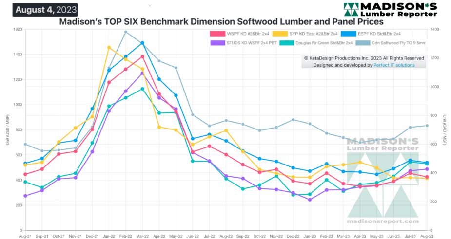 Madison’s Benchmark Top-Six Softwood Lumber and Panel Prices: Monthly