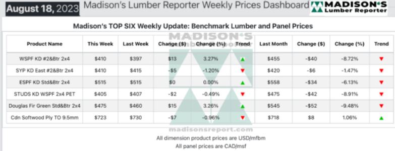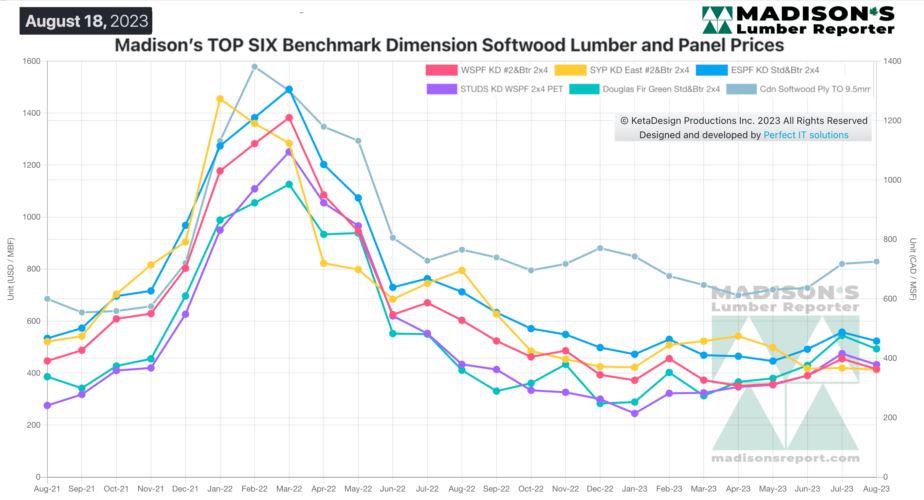 Madison’s Benchmark Top-Six Softwood Lumber and Panel Prices: Monthly