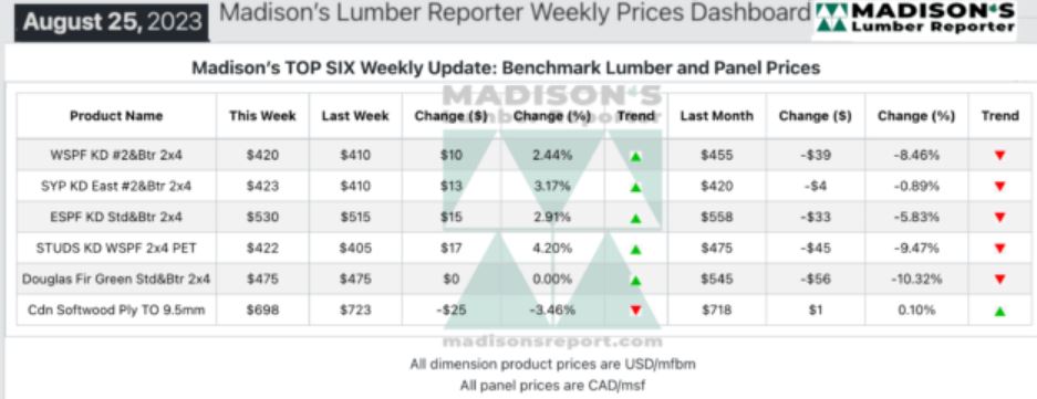 Madison’s Benchmark Top-Six Softwood Lumber and Panel Prices: Monthly
