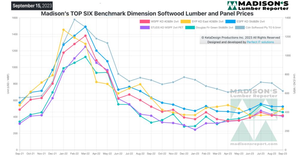 Madison’s Benchmark Top-Six Softwood Lumber and Panel Prices: Monthly