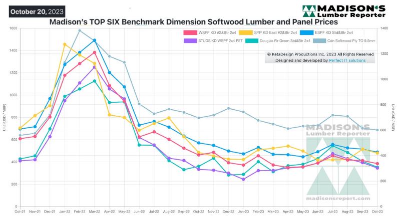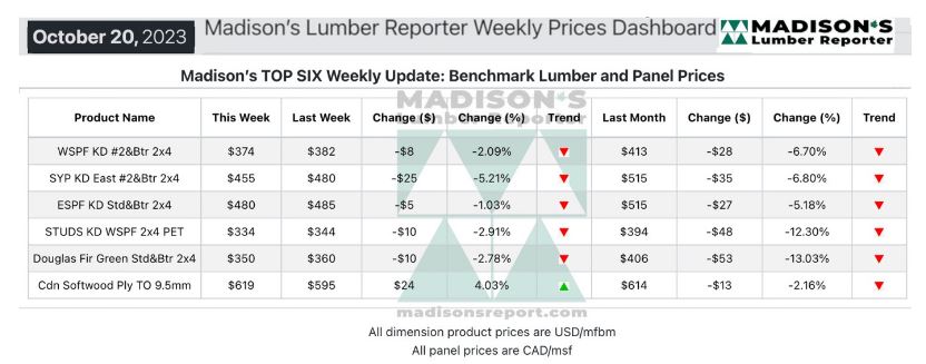 In the week ending October 20, 2023, the price of Western S-P-F 2x4 #2&Btr