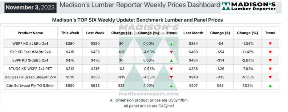 In the week ending November 3, 2023, the price of Western Spruce-Pine-Fir