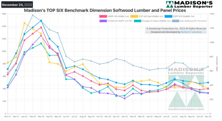 In the week ending November 24, 2023, the price of benchmark softwood lumber