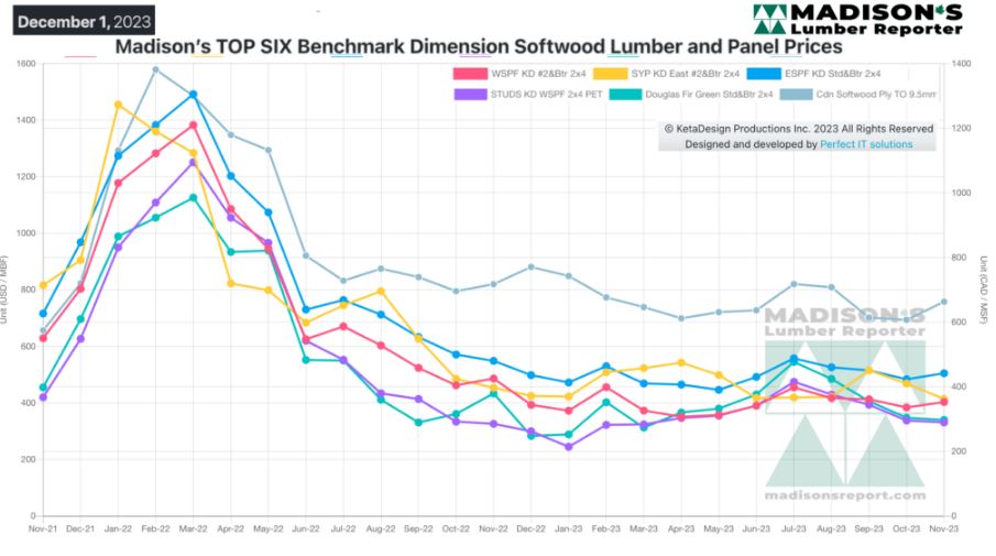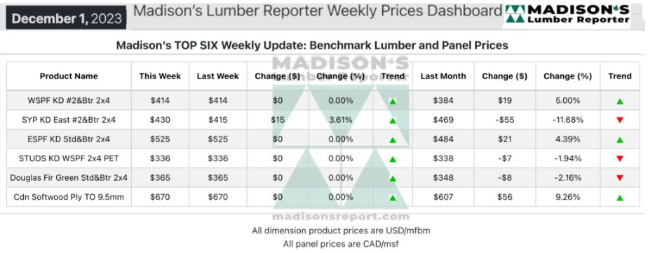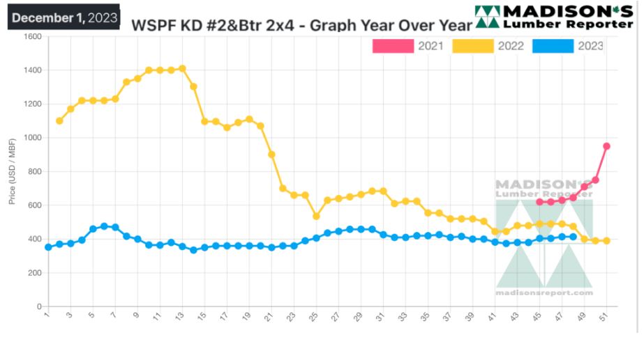 In the week ending December 1, 2023, the price of Western Spruce-Pine-Fir