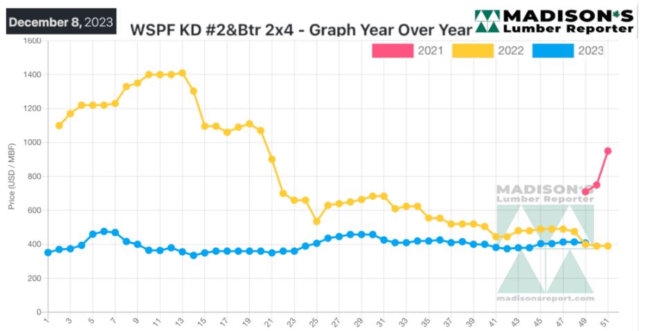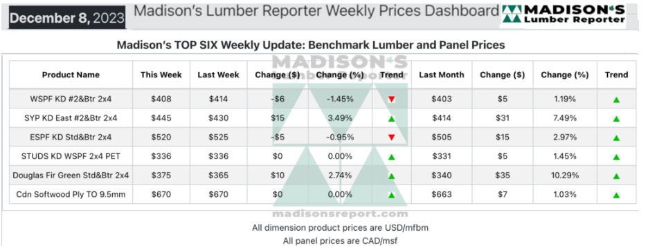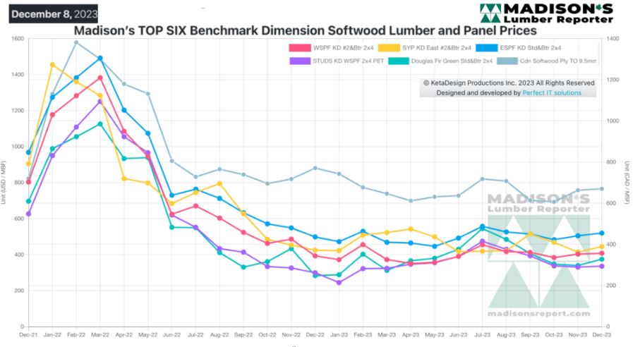 In the week ending December 8, 2023, the price of benchmark softwood lumber