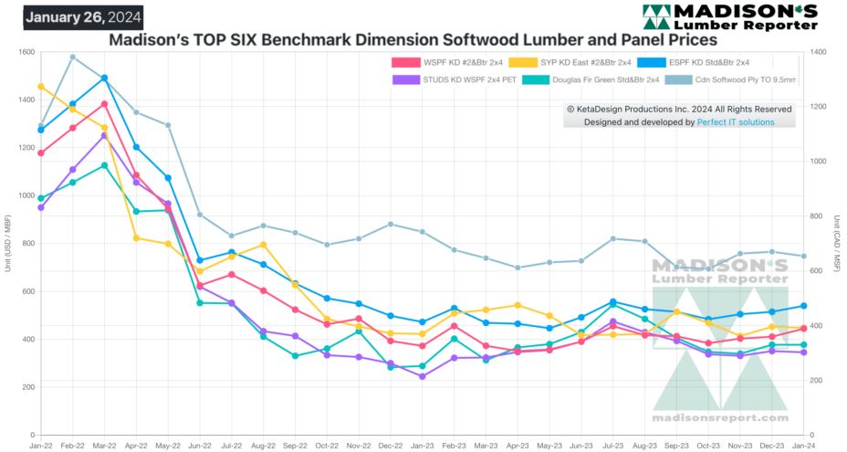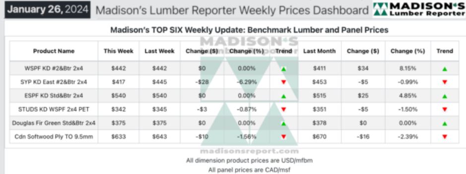 MADISON’S BENCHMARK TOP-SIX SOFTWOOD LUMBER AND PANEL PRICES: MONTHLY