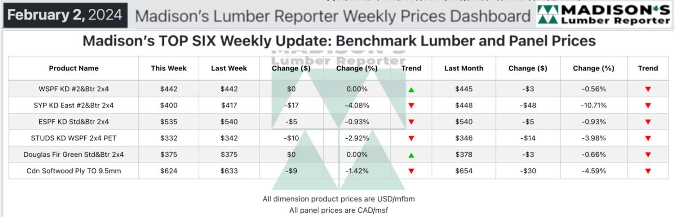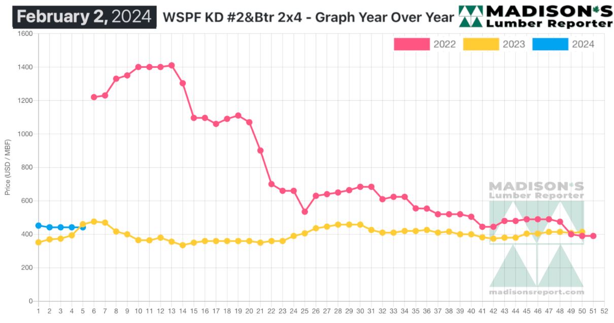 In the week ending February 2, 2024, the price of Western Spruce-Pine-Fir