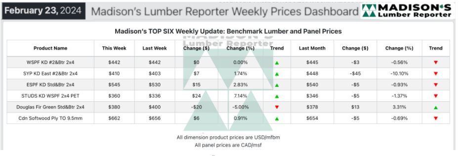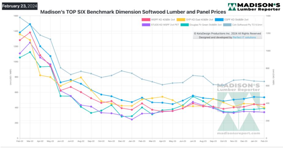 In the week ending February 23, 2024, the price of benchmark softwood lumber