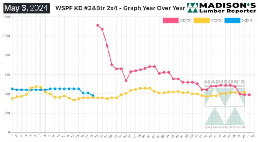 Western Spruce-Pine-Fir 2×4 #2&Btr Kd (Rl) For The Week Ending May 3, 2024
