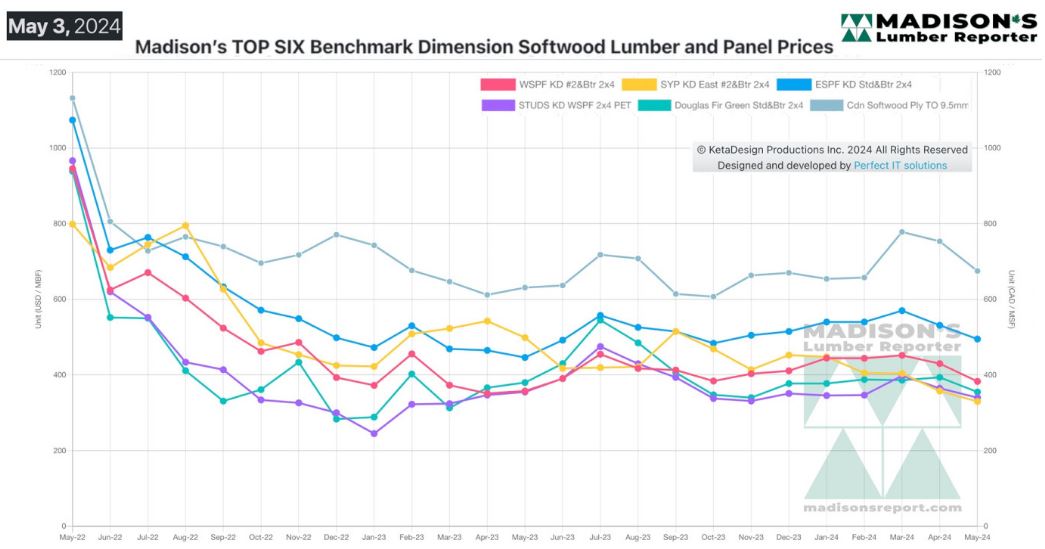 In the week ending May 3, 2024, the price of benchmark softwood lumber item