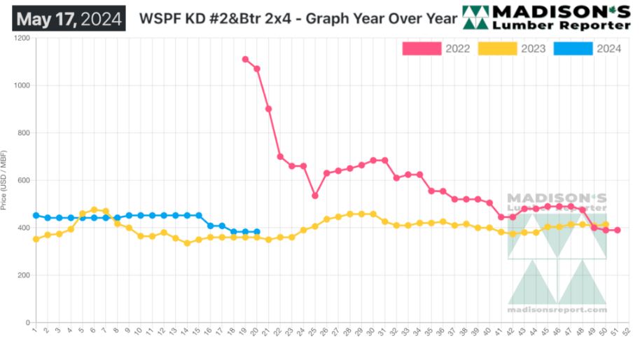 Western Spruce-Pine-Fir 2×4 #2&Btr Kd (Rl) For The Week Ending May 17, 2024