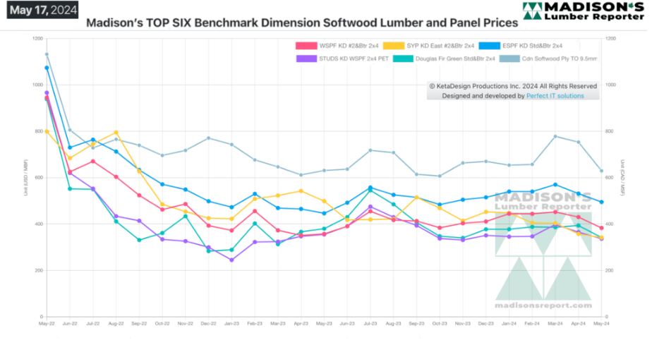 MADISON’S BENCHMARK TOP-SIX SOFTWOOD LUMBER AND PANEL PRICES: MONTHLY