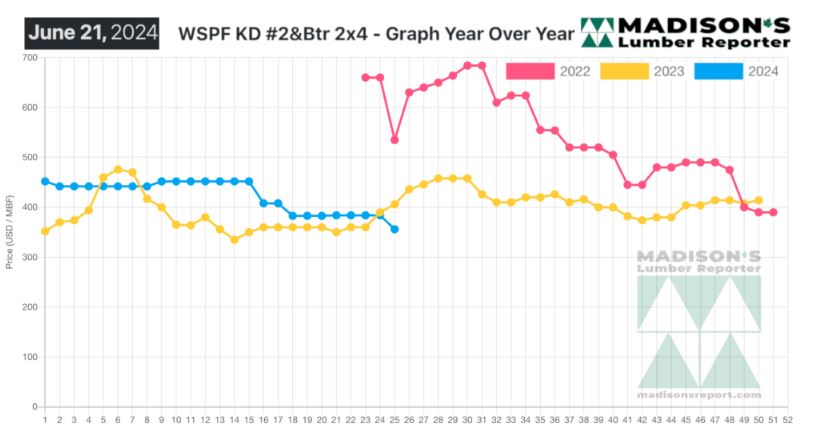 In the week ending June 21, 2024, the price of Western Spruce-Pine-Fir 2×4