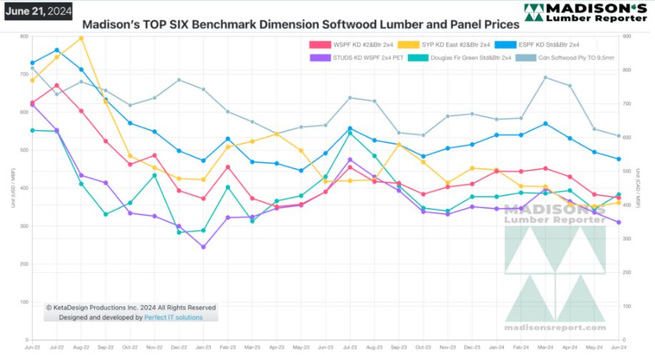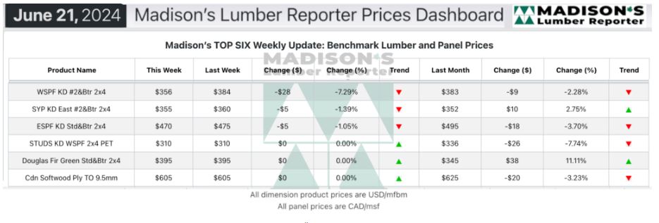 MADISON’S BENCHMARK TOP-SIX SOFTWOOD LUMBER AND PANEL PRICES: MONTHLY