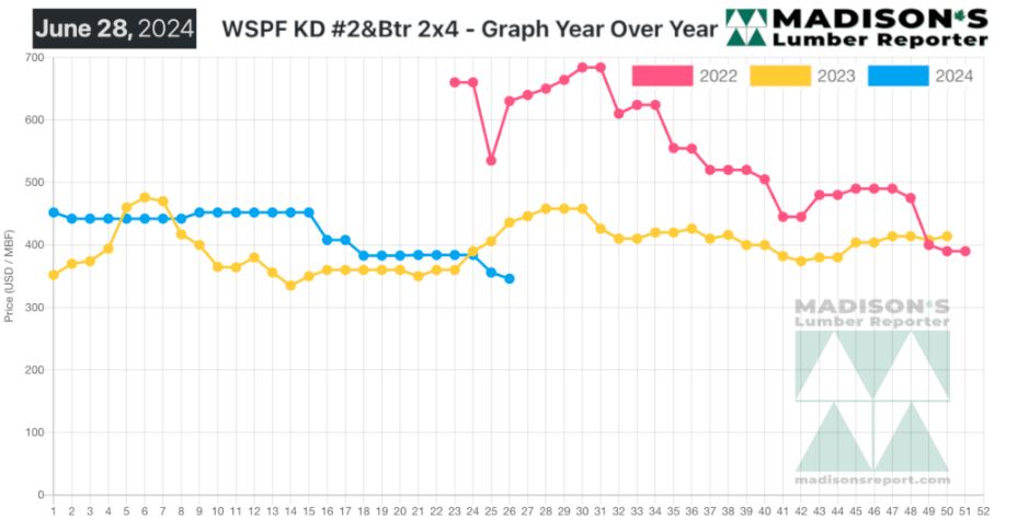 Western Spruce-Pine-Fir 2×4 #2&Btr Kd (Rl) For The Week Ending June 28, 2024