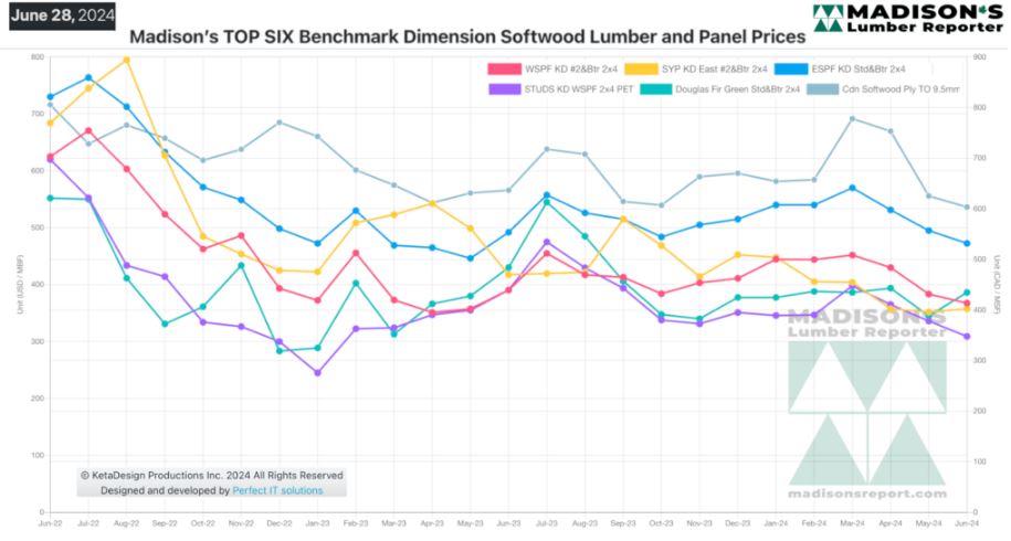 In the week ending June 28, 2024, the price of benchmark softwood lumber