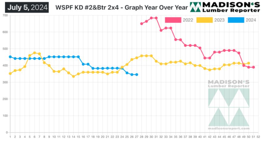 Western Spruce-Pine-Fir 2×4 #2&Btr Kd (Rl) For The Week Ending July 5, 2024