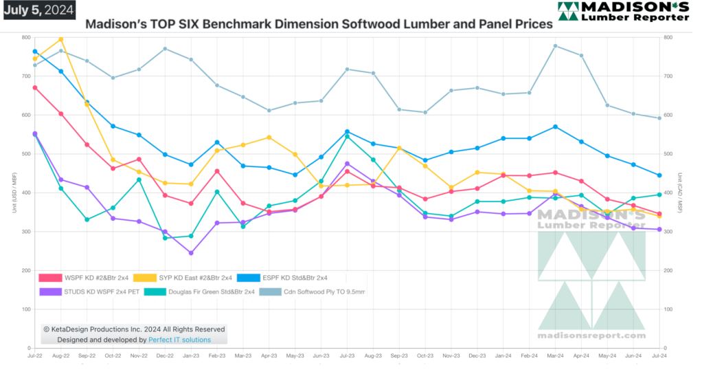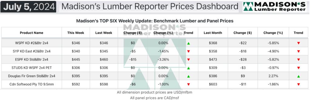 MADISON’S BENCHMARK TOP-SIX SOFTWOOD LUMBER AND PANEL PRICES: MONTHLY