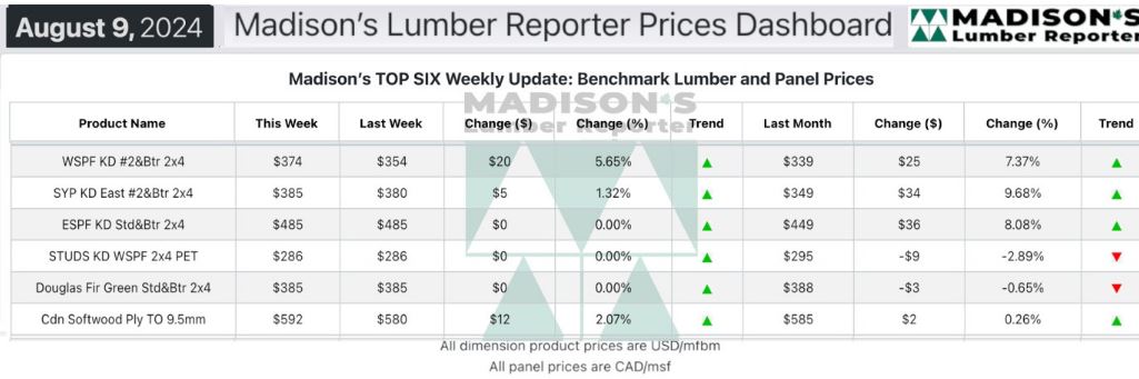 Madison’s Lumber Reporter. This is up +$20, or +6%, from the previous week